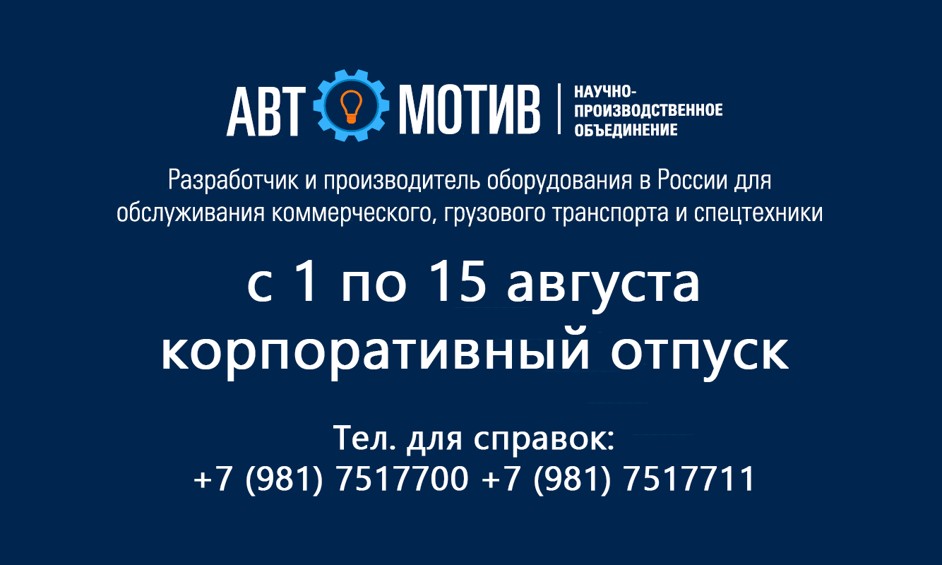 Дорогие друзья и партнёры сообщаем о том, что с 1 по 15 августа 2024 компания НПО "Автомотив" уходит в корпоративный отпуск. По вопросам приобретения, гарантии, сотрудничества и прочего можно обращаться по телефонам: